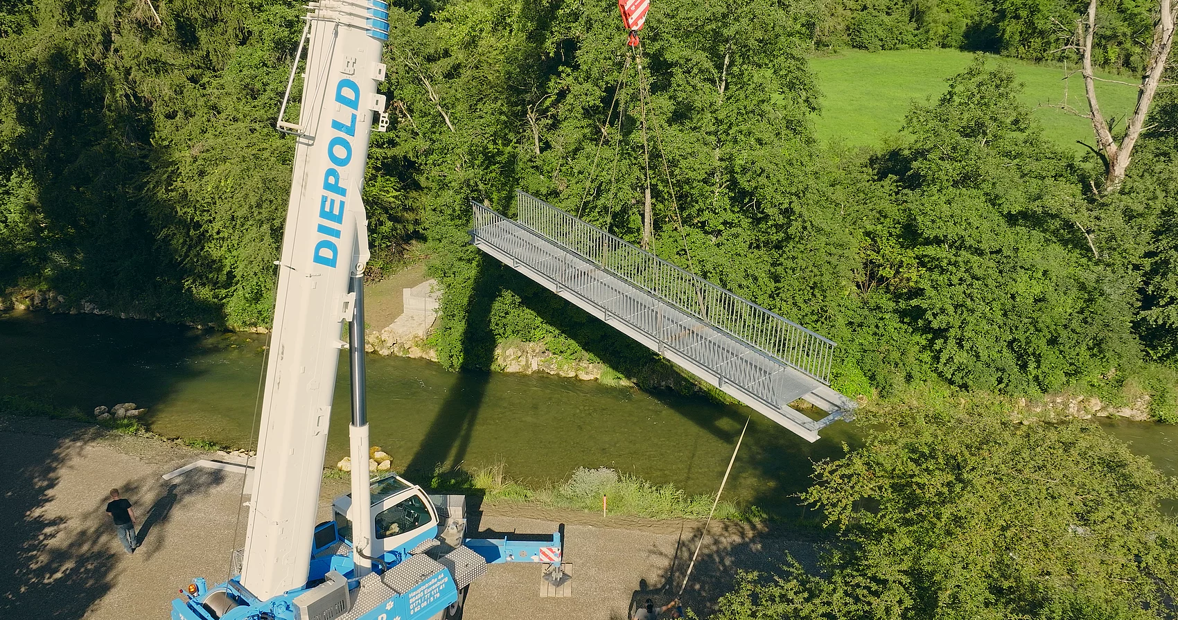 Hier sehen Sie ein Video vom Brücken-Einbau (im August 2023).