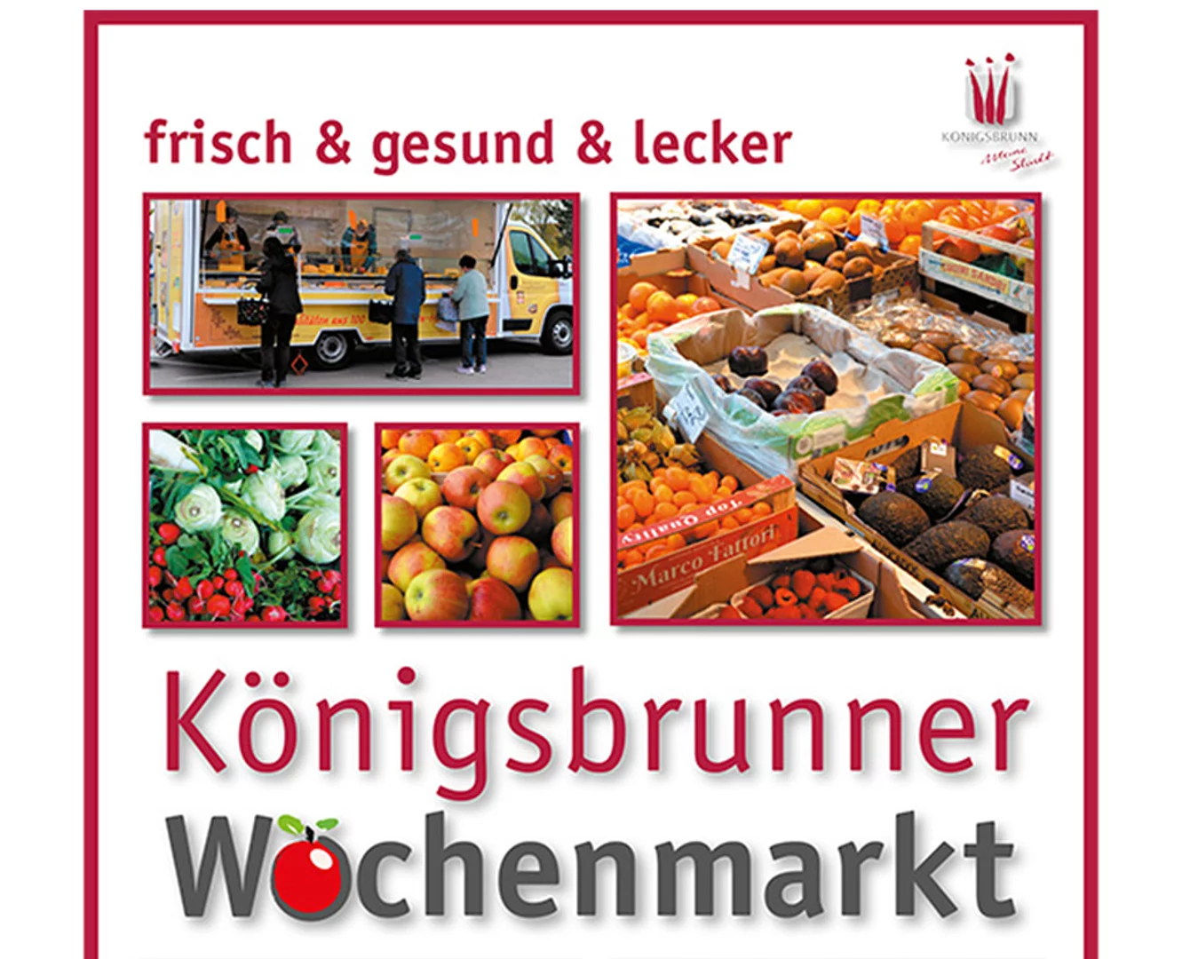 Der Königsbrunner Wochenmarkt begeht sein 50-jähriges Jubiläum! Dies wird am Samstag, 12. Juli 2025 auf dem Marktplatz gefeiert! Obst und Gemüse, Käse, Nudeln und Eier, Fleisch und Wurst, Blumen, Honig, Gewürze, Öl und Tee, Weine und Spirituosen …: Jeden Samstag (08:00 Uhr – 12:00 Uhr) gibt es auf dem Marktplatz eine vielfältige und qualitativ hochwertige Auswahl, die stets saisonal angepasst wird – und die nicht nur treue Kunden, sondern auch immer wieder neue Besucher anlockt.