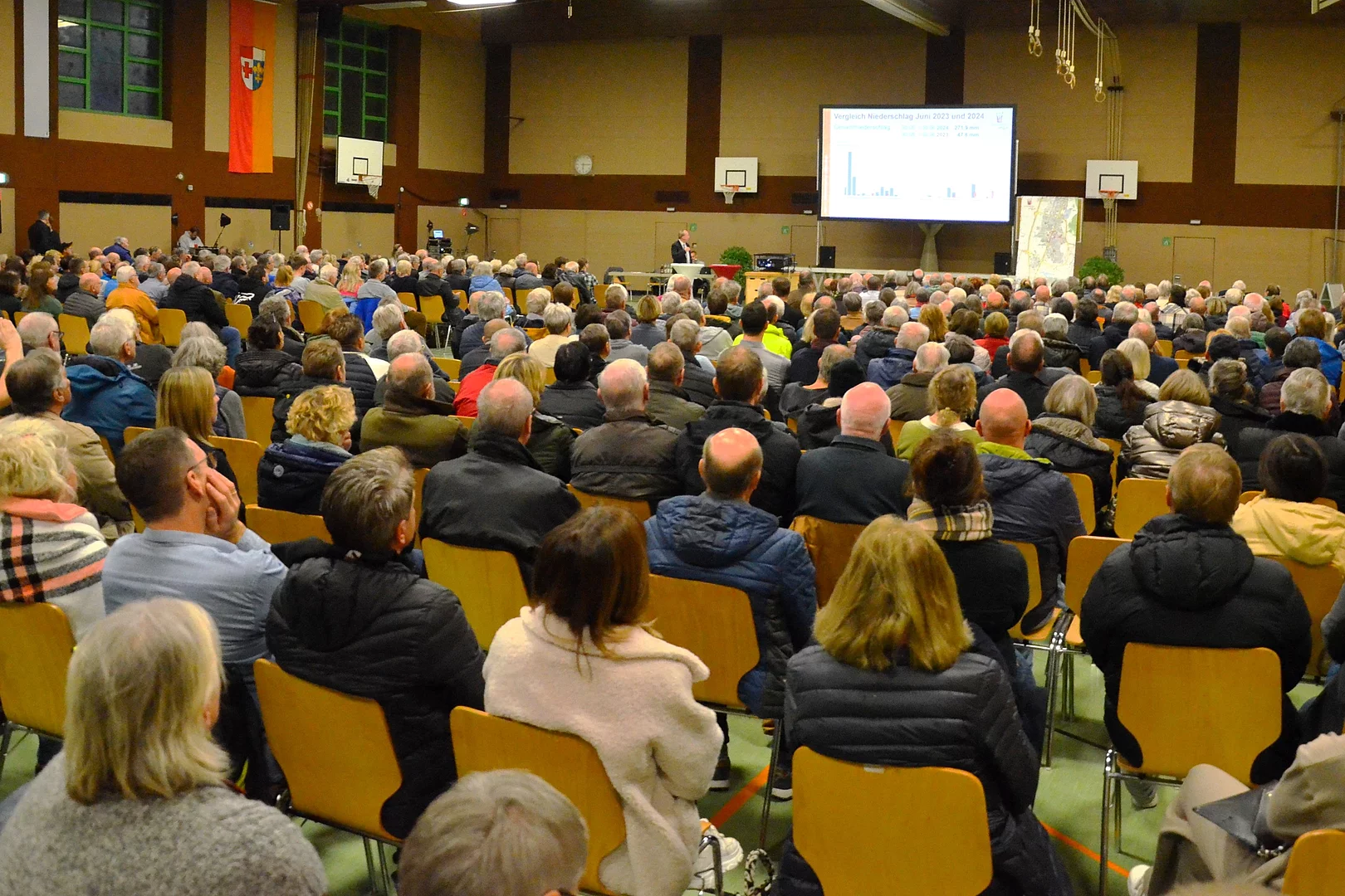 Die Dauer der Veranstaltung und die Zahl der Besucher waren eindeutige Hinweise auf die Komplexität des Themas und auf die vielen Königsbrunner Haushalte, die betroffen waren: Knapp 600 Personen kamen zur „Infoveranstaltung Grundwasserhochstand“, die am 13. November 2024 in der Willi-Oppenländer-Halle stattfand und viereinhalb Stunden dauerte. Thema waren die Starkregenereignisse im Juni 2024 und der damit verbundene Grundwasserhochstand.