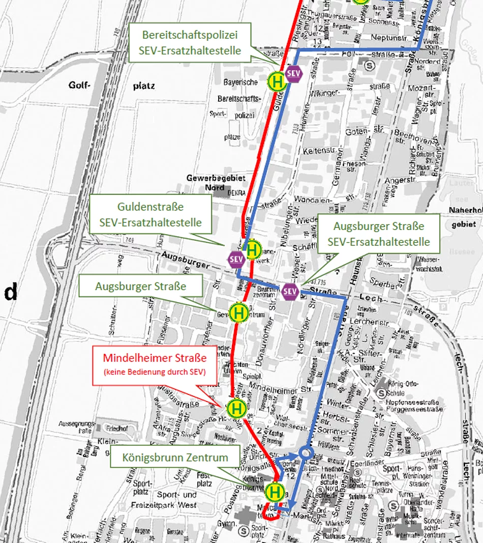 Ersatzhaltestellen im Bereich "Königsbrunn Zentrum"