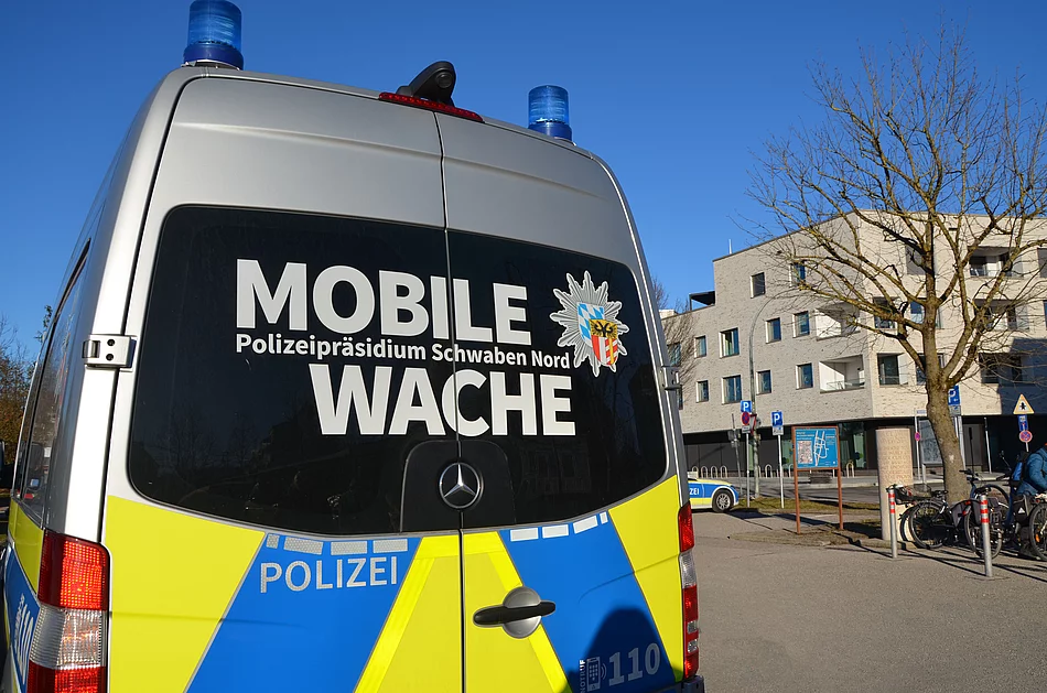 Immer am ersten Samstagvormittag des Monats stehen nun auf dem Königsbrunner Marktplatz Polizeibeamte für Fragen und zur Beratung bereit. Erstmals war die mobile Wache des Polizeipräsidiums Schwaben Nord am 3. Februar 2024 hier präsent.