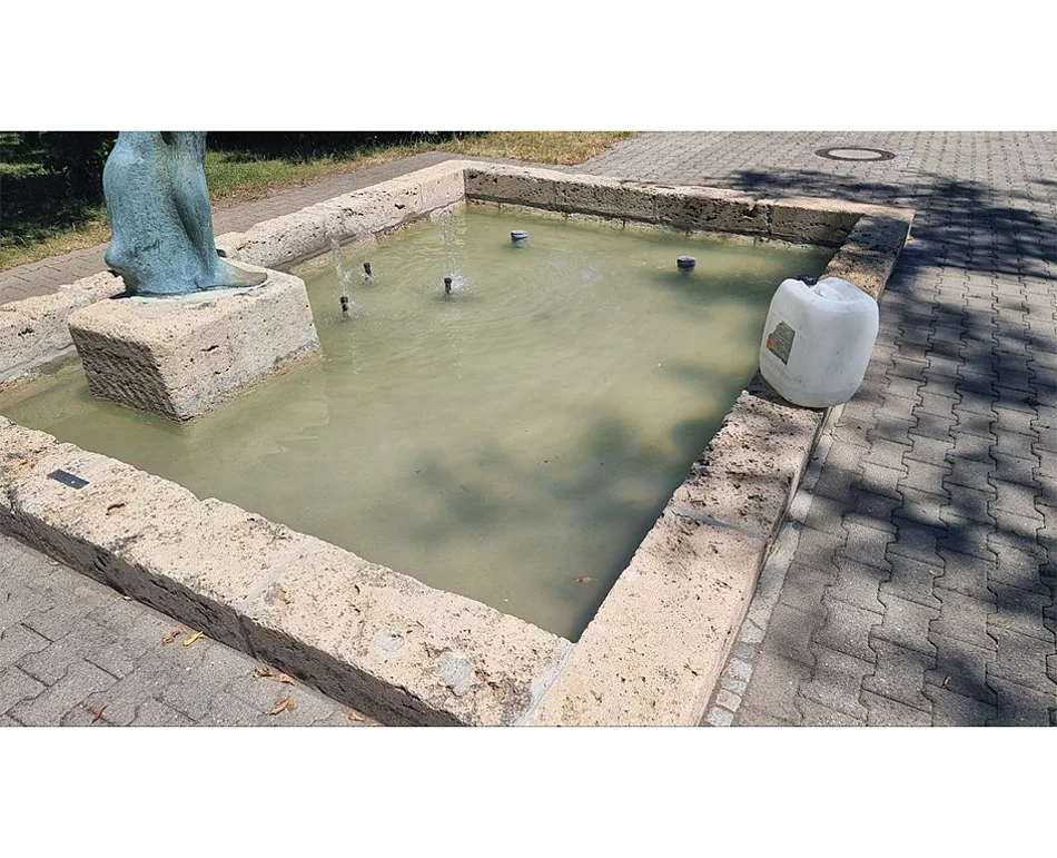 - Dem Wasser werden Chemikalien zugesetzt, um einem Veralgen, Eintrüben und Verkalken vorzubeugen und somit das Funktionieren der Brunnen-Technik langfristig zu sichern. Diese Chemikalien sind nicht für den Körperkontakt geeignet und können im schlimmsten Fall die Gesundheit gefährden.