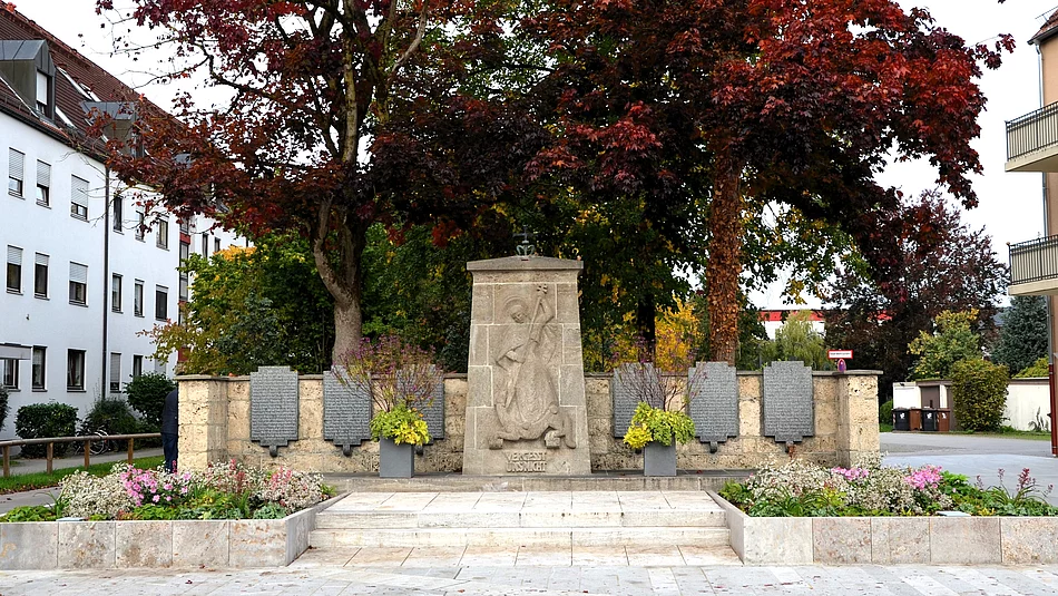 - Im Anschluss, gegen 9:30 Uhr, stellt sich der Trauerzug vor der Kirche auf und zieht über die Bürgermeister-Wohlfarth-Straße zum Kriegerdenkmal.