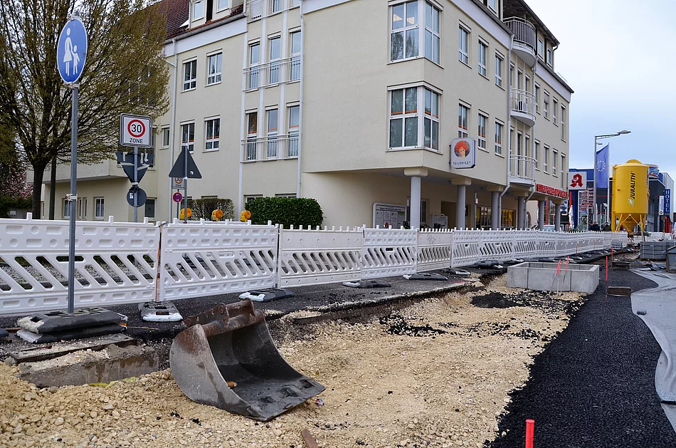 Ab Mittwoch, 26. April, wird die Zufahrt von der Bürgermeister-Wohlfarth-Straße in die Heimgartenstraße nochmals gesperrt, denn hier stehen nun die Pflasterarbeiten an.